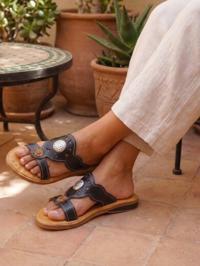$ 58,99 – $ 79,00Price range: $ 58,99 through $ 79,00Electra - Black Leather Gladiator Sandals | Handmade Moroccan Flat Sandals for Women