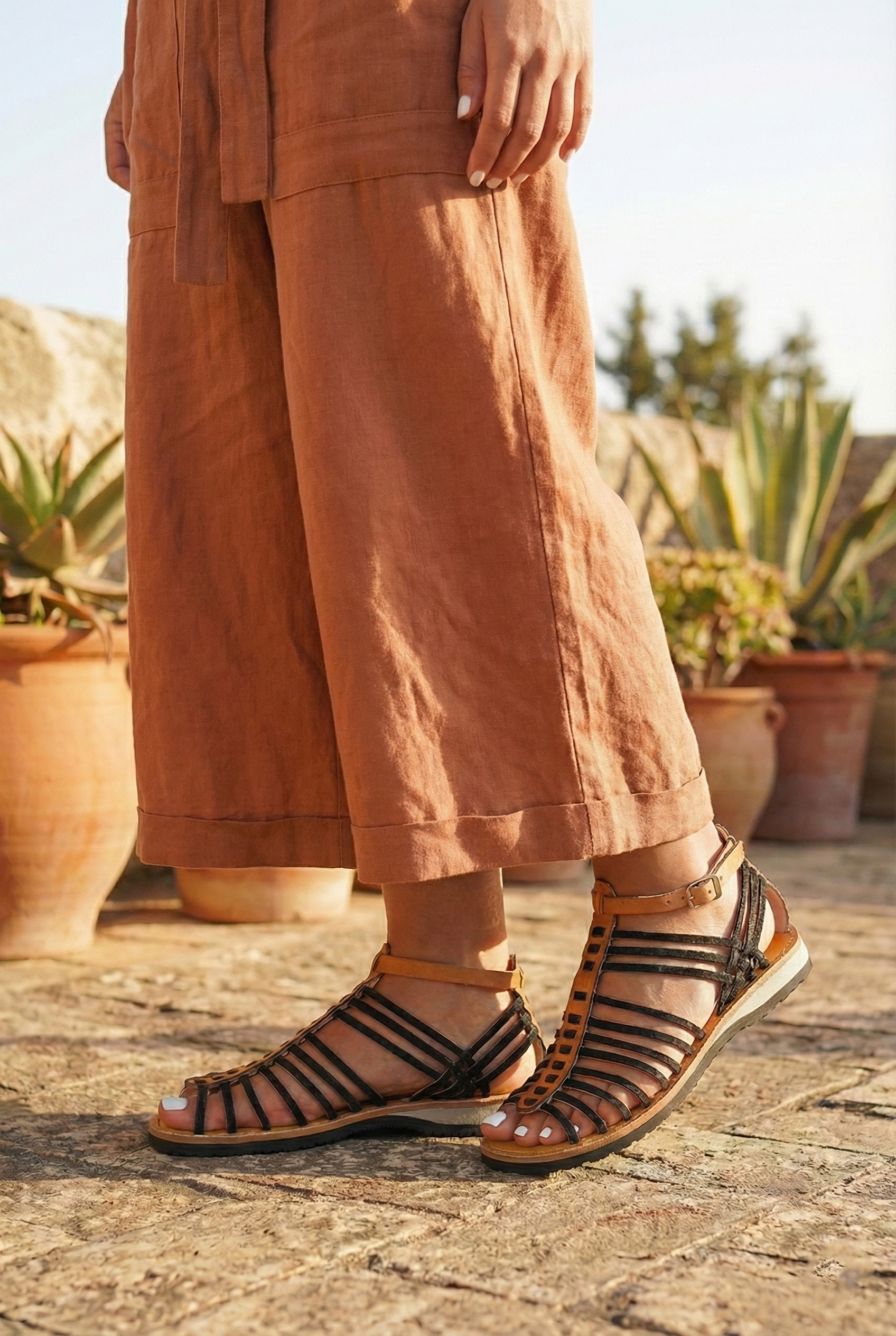 When you open a box from Kasba Leather, you notice the scent immediately. It smells of rich, earthy, vegetable-tanned leather. The Black Leather Gladiator Sandals, known as the Electra, are more than just shoes. In fact, our family workshop crafts them by hand in Morocco.