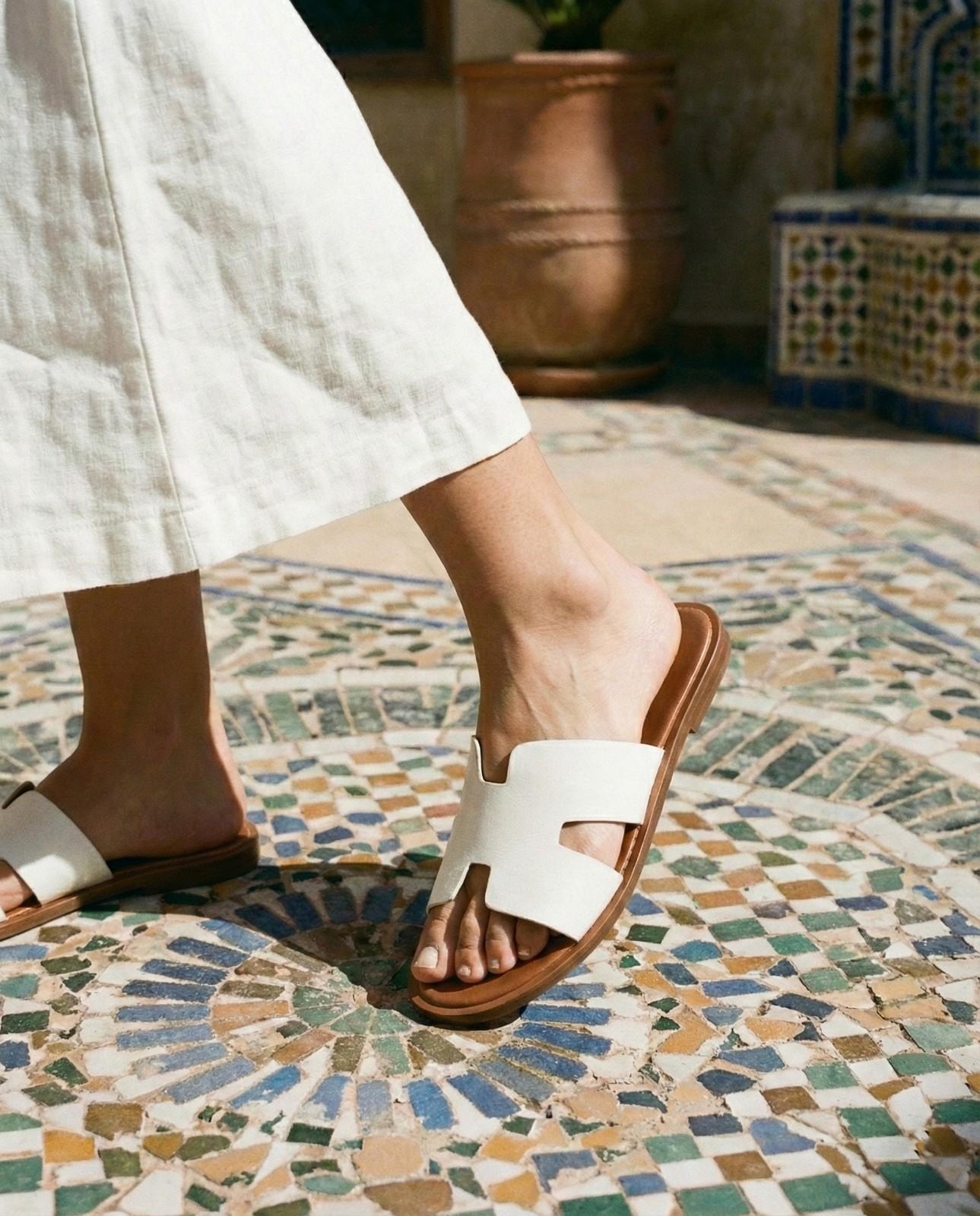 Summer Styling Finally, The Assilah is incredibly versatile. They look stunning with a colorful maxi dress or simple denim shorts. Whether you are walking the streets of Santorini or relaxing in your garden, these Women’s White Leather Slides add a touch of luxury. You can also browse our Woven Straw Bags (Link to your Bags Category) to complete your vacation outfit.