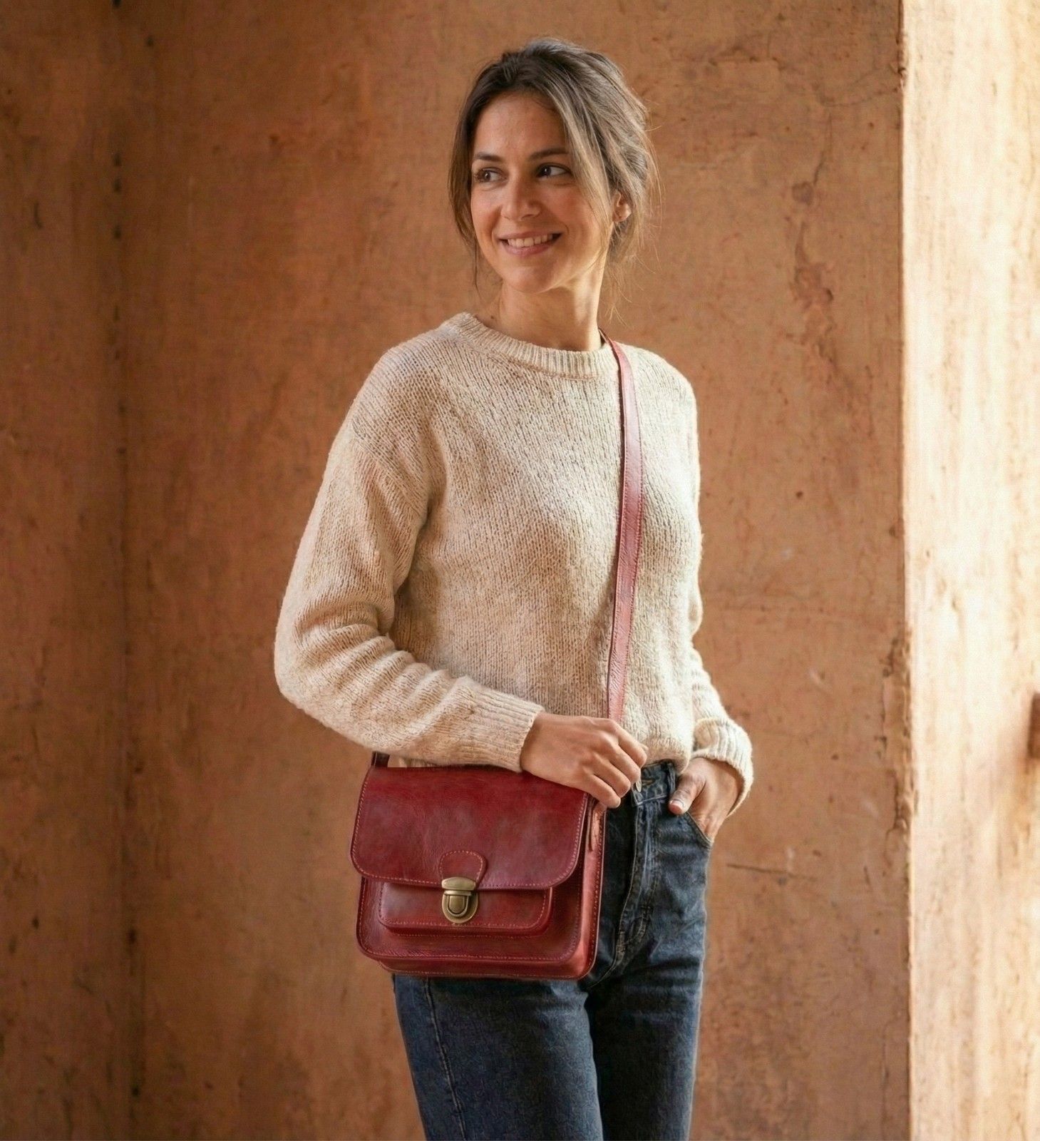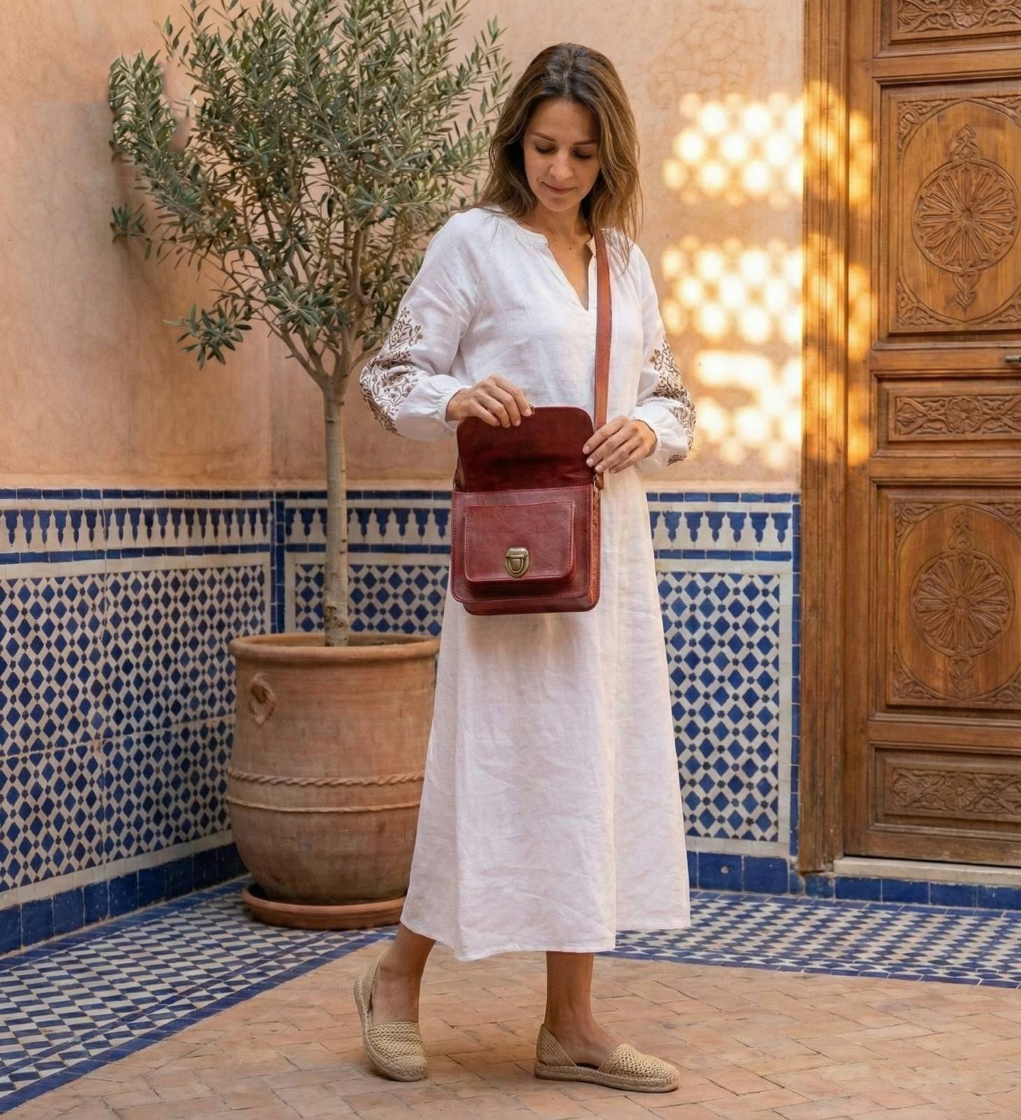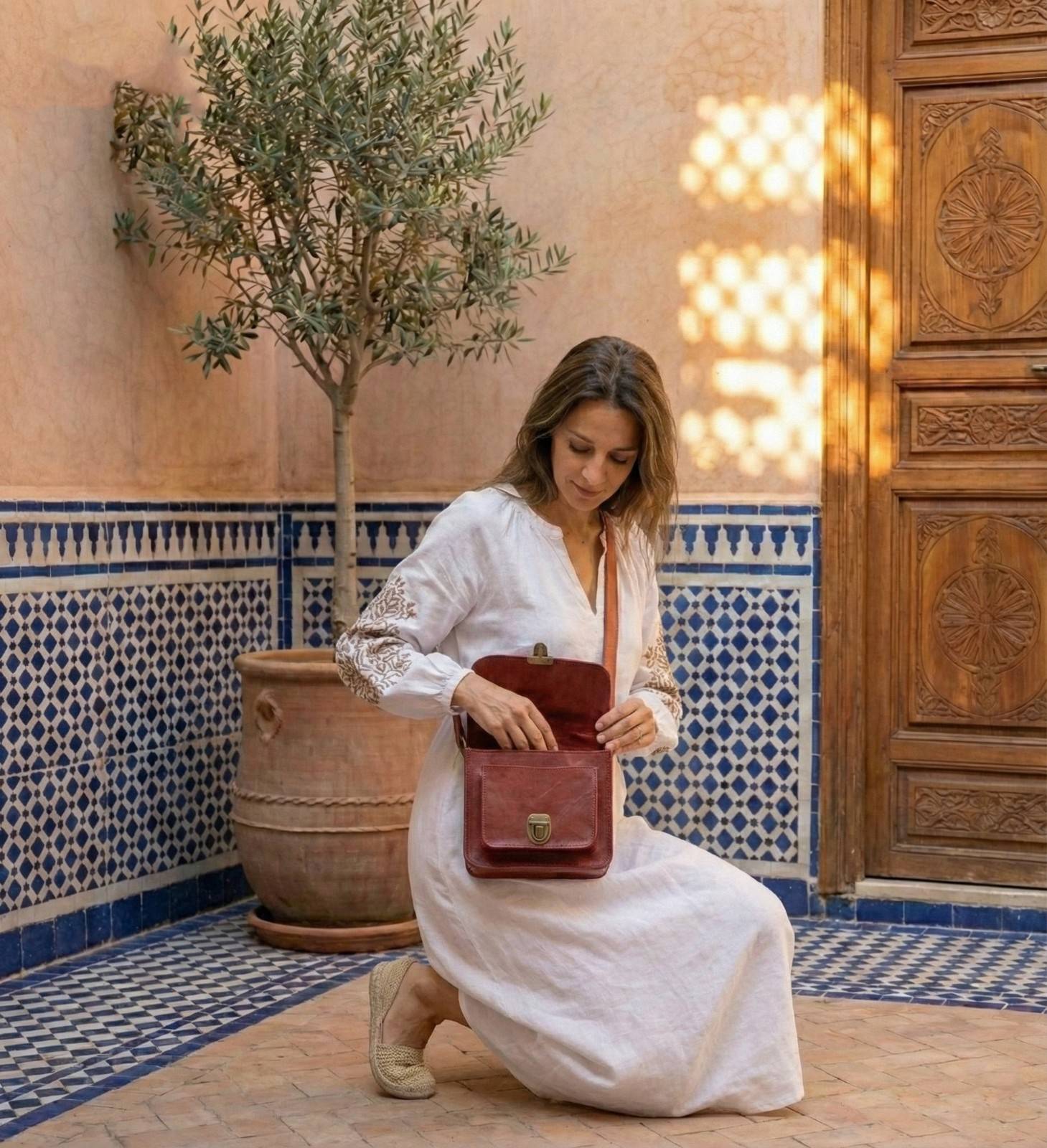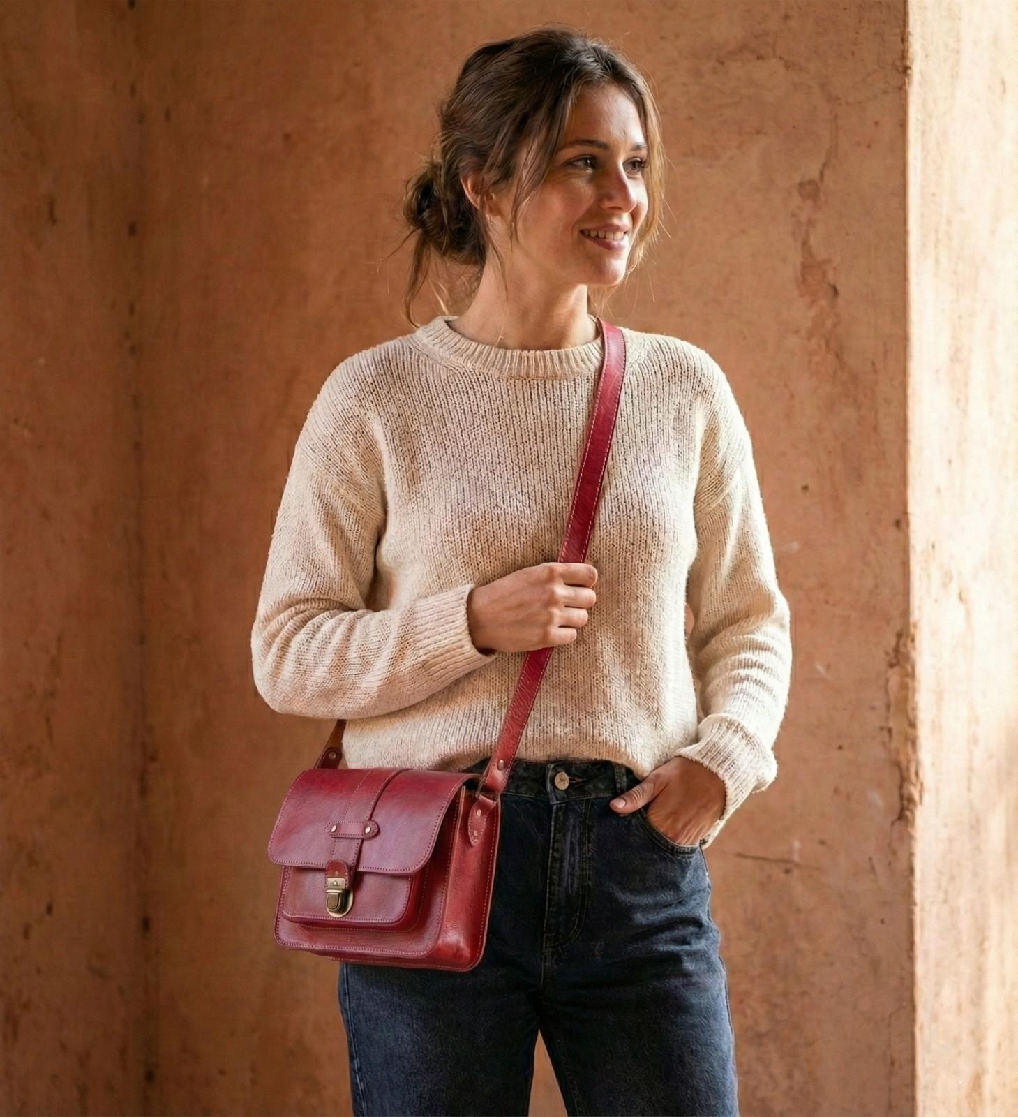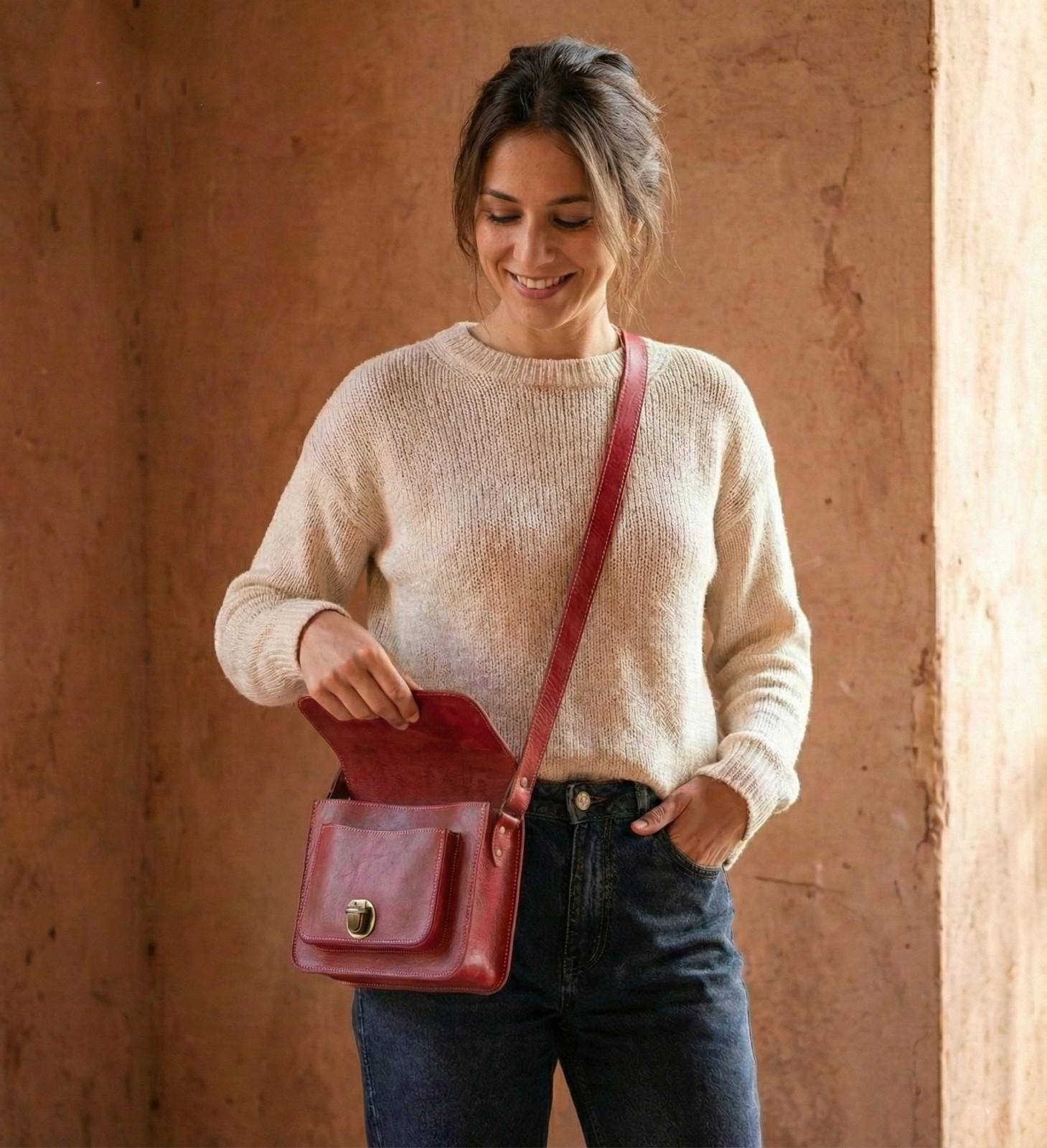 How to Style It Finally, The Marrakech is the perfect “Pop of Color.” It looks incredible against neutral tones like white linen, beige trench coats, or classic blue denim. This Women’s Red Leather Crossbody is not just a bag; it is a conversation starter. If you love bold colors, check out our Colorful Babouche Collection (Link to your Slippers Category) to find a matching vibe.