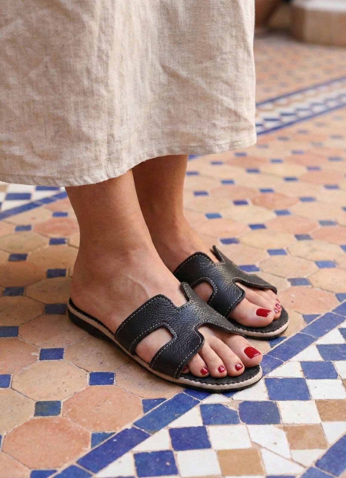 Versatile Styling Finally, The Assilah in black is your most reliable accessory. It looks professional with a blazer and jeans. Alternatively, wear them with a silk skirt for a relaxed evening look. These Women’s Black H-Strap Sandals offer luxury without the fuss. You can also browse our Leather Clutches (Link to your Bags Category) to match the sleek aesthetic.
